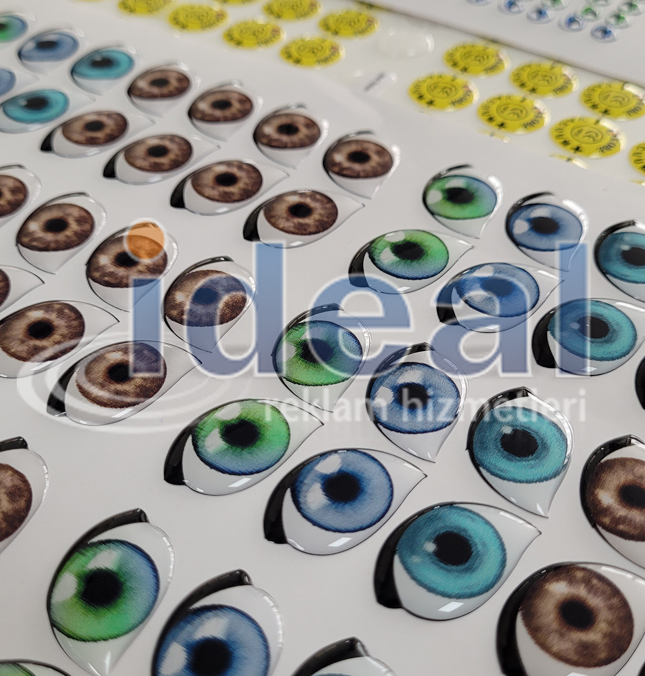 Siparişleriniz, ihtiyaca göre EcoSolvent yada UV Baskı makinelerind, tercihinize göre Beyaz, CMYK, Altın, Gümüş yada Hologram olarak basılır, Hassas dijital plotterlarda kesilir ve Damla Etiket üretimi gerçekleştirilir.